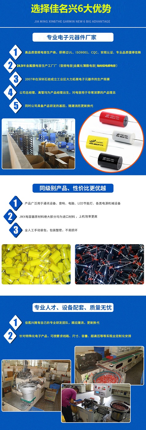 6)若使用要求不高可以從市場上買一些通用的,自己做一下拷機試驗,通過了,就可以放心使用了。(佳名興主要做高端薄膜電容)