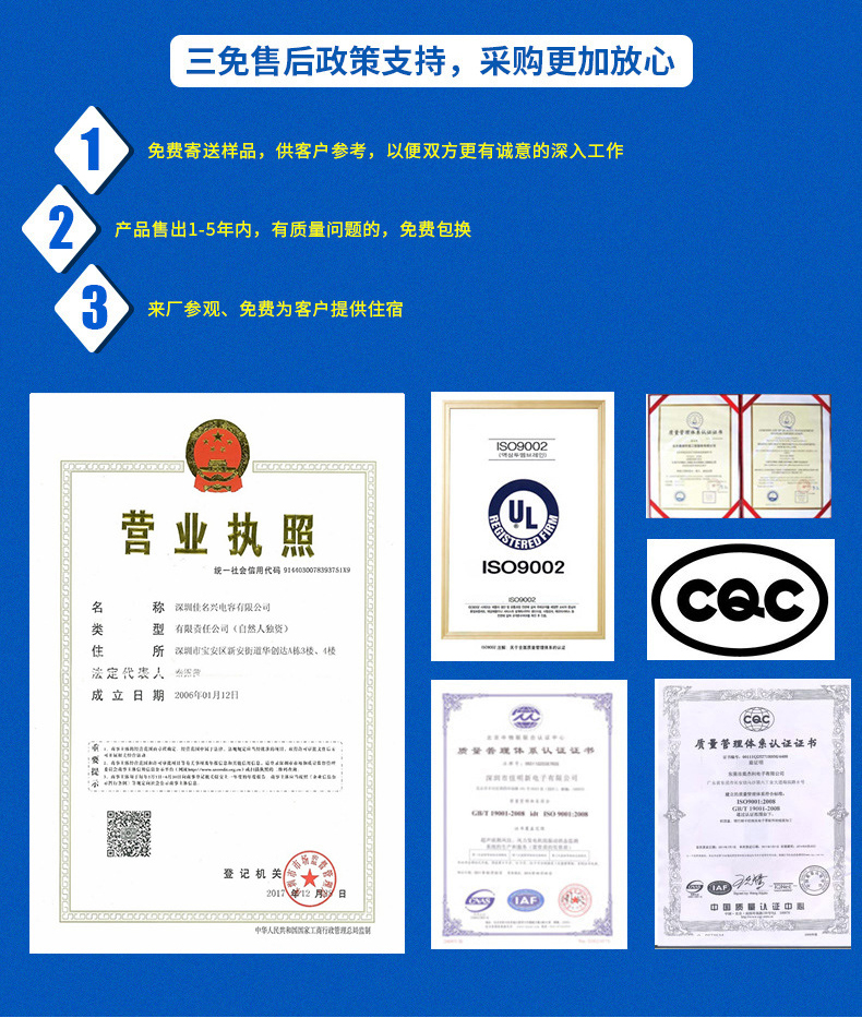 JMX電容為上千家客戶提供電容近20年,JMX電容已成為優(yōu)質(zhì)的電容供應(yīng)商之一,熱誠(chéng)歡迎各界朋友蒞臨佳名興電容器工廠參觀,指導(dǎo)和業(yè)務(wù)洽談。電容器訂購(gòu)熱線:+86 13927412413,了解電容器參數(shù):m.bjznkmsw.com |