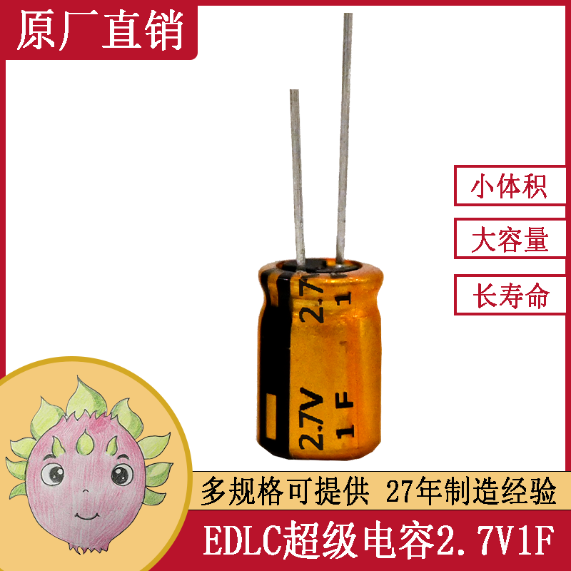 產(chǎn)品標(biāo)題:EDLC 超級(jí)法拉儲(chǔ)能電容器 單體導(dǎo)針引出型 2.7V 1.0F 6.3X12