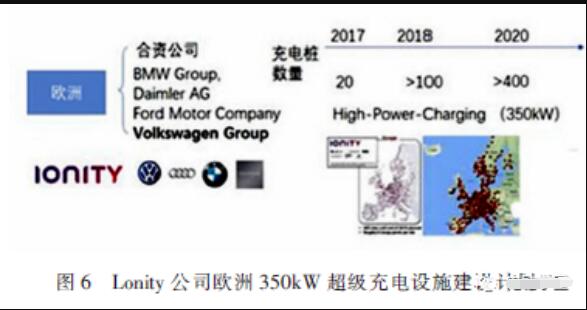 根據(jù)奧迪大功率充電分享的報(bào)告顯示,87%的受訪者更青睞于30min 內(nèi)充滿80%電量,而44%的受訪者更是希望能夠縮短至15min 以?xún)?nèi)。而歐洲和中國(guó)都在布局大功率350kW 的充電接口標(biāo)準(zhǔn),并且已開(kāi)始布局充電站。350kW 超級(jí)充電定義了1000V/350A 的充電標(biāo)準(zhǔn)和交互協(xié)議。其中Lonity 公司是德國(guó)汽車(chē)聯(lián)盟(VDA)、大眾集團(tuán)、福特汽車(chē)集團(tuán)、寶馬汽車(chē)集團(tuán)、梅賽德斯股份聯(lián)合成立的公司。歐洲以lonity 公司研發(fā)的350kW 充電樁為主,建立起第一個(gè)大功率充電網(wǎng)絡(luò),計(jì)劃2020 年安裝超過(guò)400 臺(tái),如圖6 所示。
