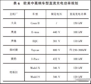 而歐美中高端車(chē)型直流充電能力偏強(qiáng),車(chē)型充電功率已達(dá)100-120kW,但是保時(shí)捷率先宣傳了其充電電壓為800V,且兼容了低電壓平臺(tái)的充電能力。詳見(jiàn)表6。